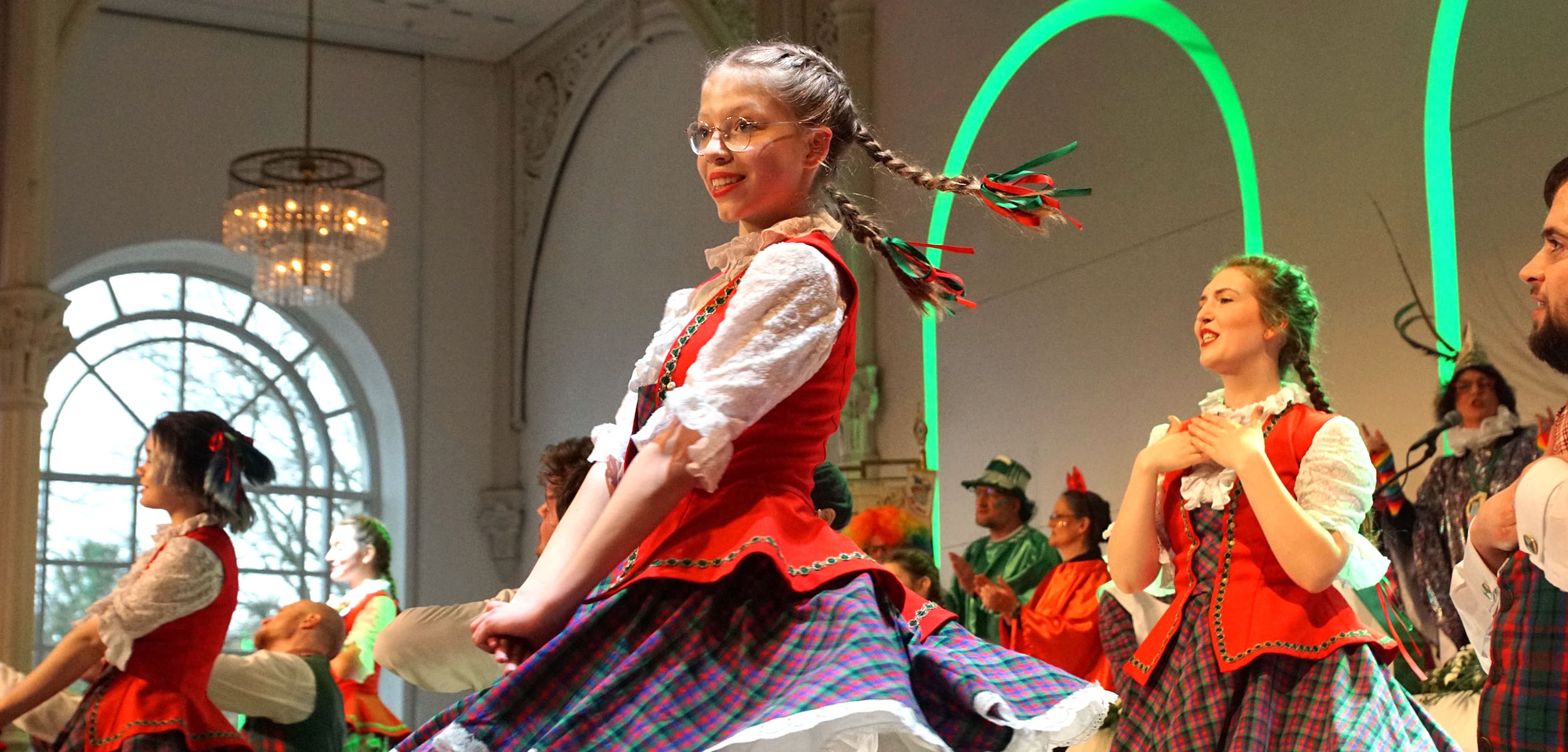 Freudig auf ein tolles Programm eingestimmt, strömten toll kostümierte Mädchen in die Flora, um ganz nach dem Motto der diesjährigen Session, fröhlich „us der Reih ze danze“. Der Elferrat präsentierte sich passend zur Location in diesem Jahr ohne Litevka, sondern als Gärtner verkleidet.